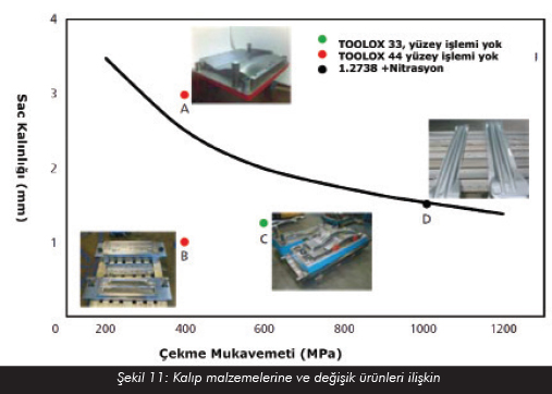 Şekil 11 değişik kalınlık ve mukavemete sahip çelik sacların form verme uygulamalarını göstermektedir.