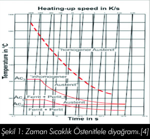 Isıtma zamanı içersinde istenilen östenitleme sıcaklığına çıkılmalıdır. Bu sıcaklıkta oluşan faz yapısında kiristal kafes dönüşümleri KHM►KYM oluşmaktadır. Bu zaman içersinde östenik fazindaki kafes (KYM) yapısının on kat karbon absorblayabilecek şekilde mümkün olan en düşük östenitleme sıcaklığında olmalıdır. Diğer taraftan karbon absorblama değeri karbon konsantrasyonuna ve ısıtma hızına bağlıdır. Malzeme kritik sıcaklığın üzerine hızlı bir şekilde ısıtılmalıdır. Bu dönüşümler “zaman-sıcaklık-östenitleme” diyagramları ile açıklanmaktadır. Tüm farklı malzemeler bu diyagrama bağlı olarak temsil edilmektedir.