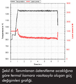 Diyotlarda üretilen lazer ışını orantılı olarak kullanılabilmektedir. Eğer diyot güç sağlayıcısını ani olarak değiştirirseniz lazer çıkış gücüde aynı hızla değişecektir. Bunun gerçekleşmesi sisteme entegre edilen termal kamara yardımıyla sağlanmaktadır. Termal kamara parça yüzeyinde tanımlanmış olan östenitleme sıcaklığını çok hassas toleranslarda kontrol etmekte ve bu östenitleme sıcaklık değerini toleranslar mertebesinde de sabit tutmaktadır. Bu belirlenen östenitleme sıcaklık değerinin sabit kalmasını güç değişimiyle sağlamaktadır.Tanımlanmış hat boyunca diyotlardan uygulanması gereken güç değeri sertlik hattının genişliğine ve östenitleme sıcaklık değerine bağlıdır. (Şekil 6).