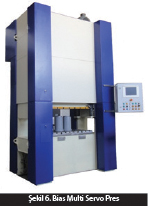 miştir (Şekil 6). Bias’ın geliştirdiği servo presi, diğerlerinden ayıran en önemli özellik, sistemde hem normal motor + volan hem de servo motor kullanılmasıdır.