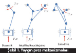 Sac ve hacim şekillendirme işlerinde, farklı ihtiyaçlar için farklı mekanizmalara sahip mekanik pres tipleri geliştirilmiştir. Bunların içinde yaygın olanları eksantrik (krank/biyel mekanizması), modified knuckle joint [1] ve link drive’dır [1] (Şekil 1).