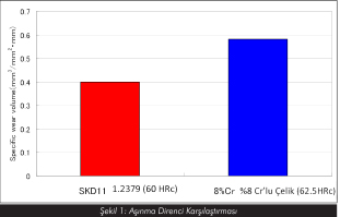 Şekil 1 incelendiğinde bu malzemeleri 1.2379 kaliteye göre daha tok olmalarına rağmen aşınma dirençlerinin daha düşük olduğu rahatlıkla görülecektir.