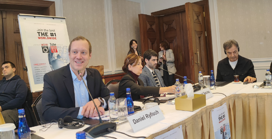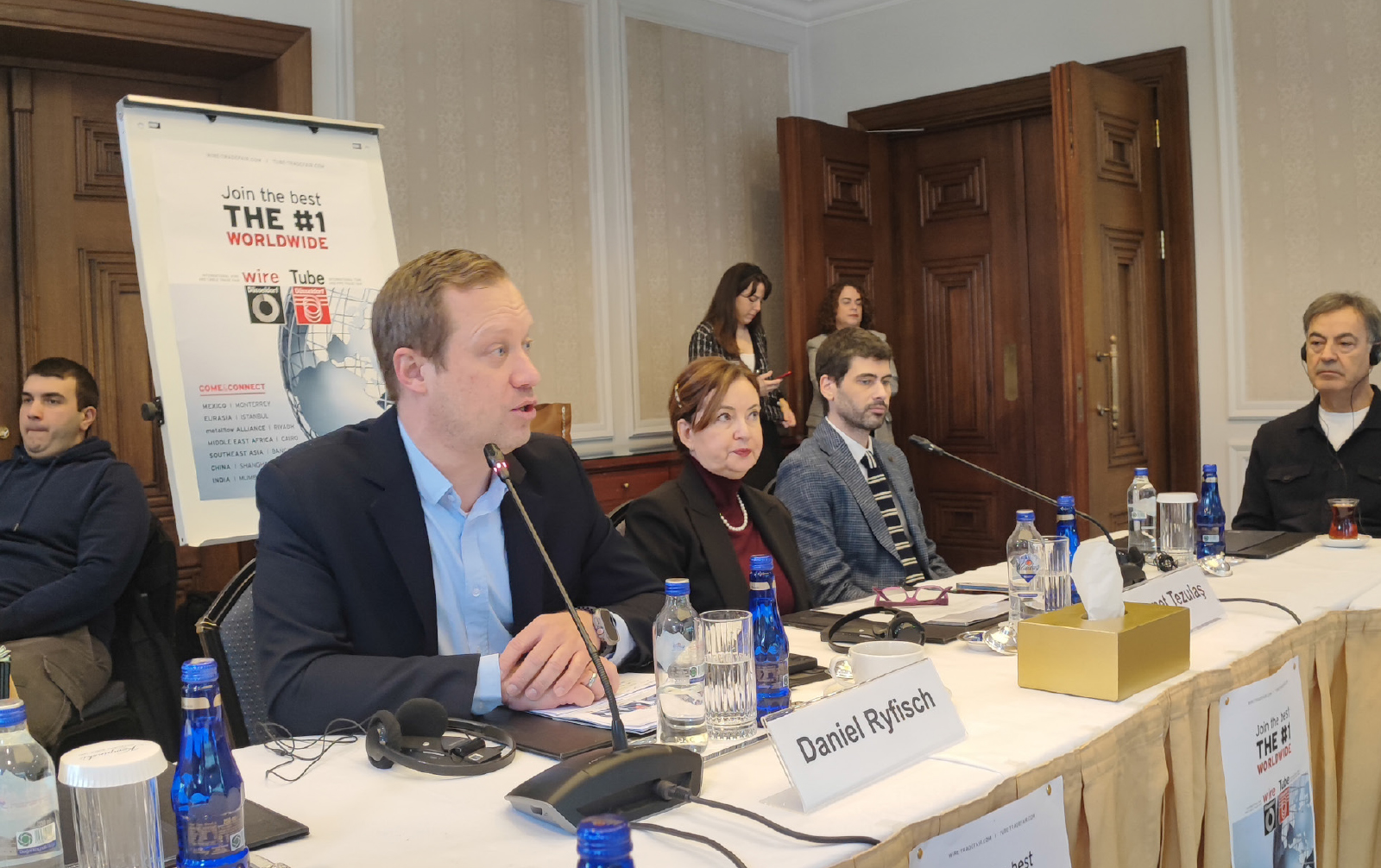 Almanya’nın Düsseldorf fuarında 13-17 nisan 2026 tarinde gerçekleşecek olan wire& tube fuarlarıyla ilgili basın toplantısına Messe Düsseldorf’dan Daniel Ryfisch, Fuar Türkiye sorumlusu Tezulaş fuarcılıktan Demet Tezulaş ve Ali Tezulaş katıldılar.